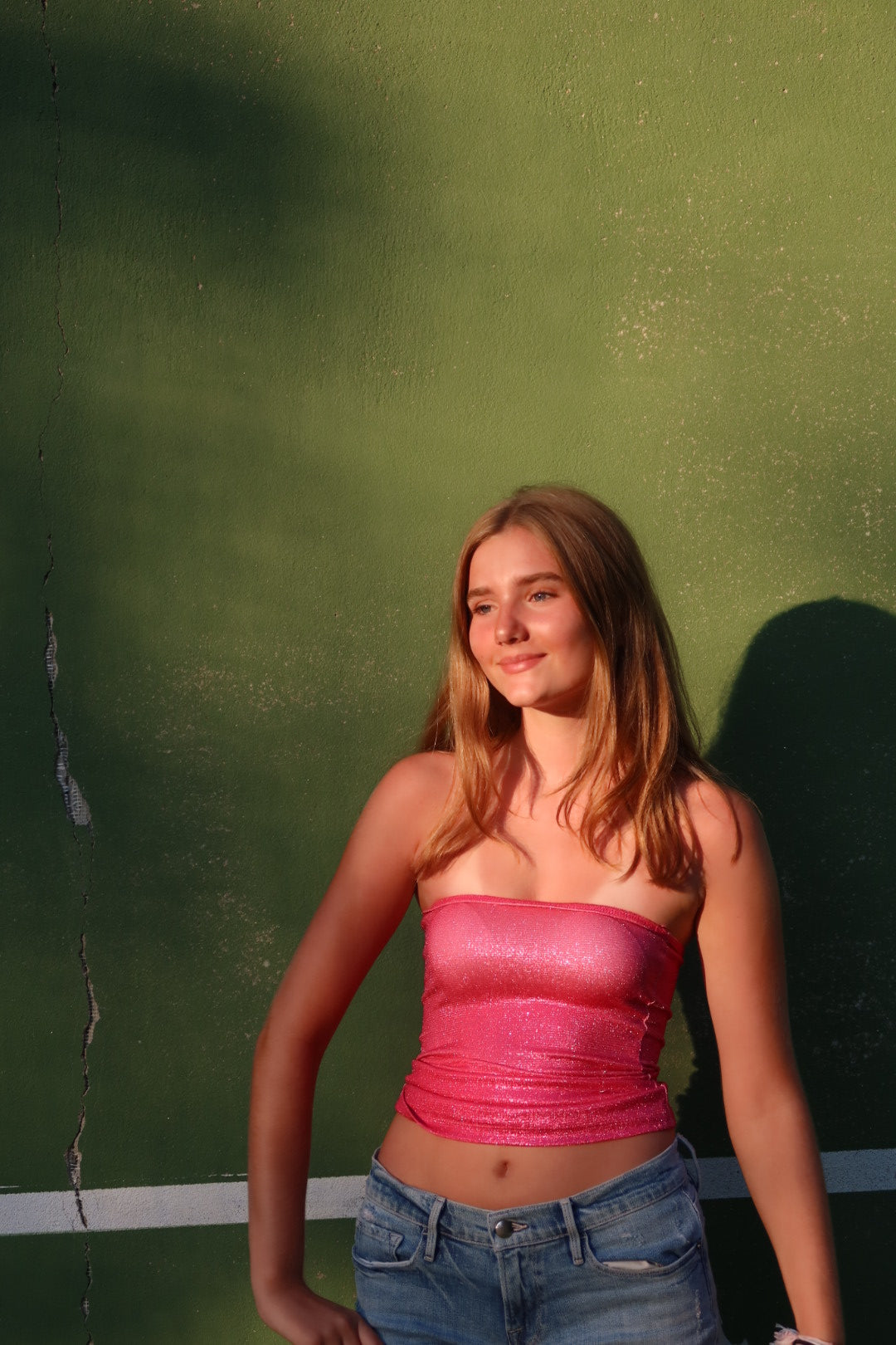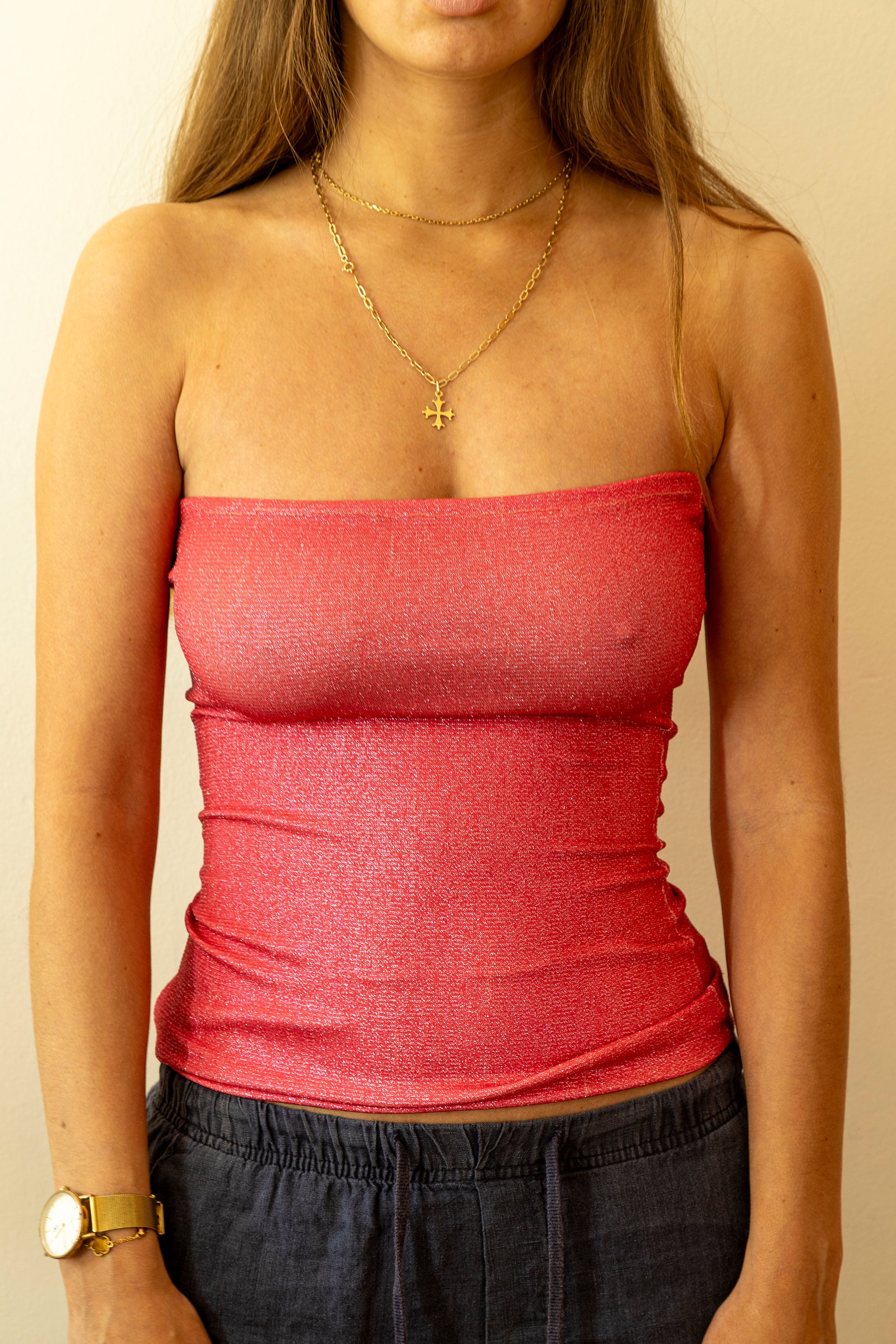 Laissez-vous envoûter par le charme éclatant du top Valérie Pissenlit. Conçu en lurex à paillettes d’un rose pétillant, ce modèle bandeau épouse parfaitement la silhouette, tout en apportant une touche de glamour et de fraîcheur à vos tenues.